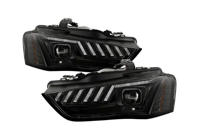 Black Devil Eye / DRL Headlights for the Audi A4 B8.5 2012-2016 model with sequential indicators for Halogen vehicles only.